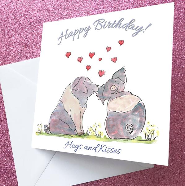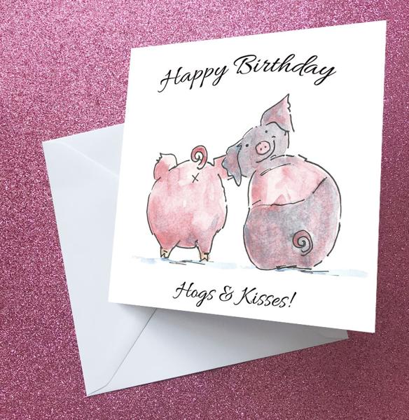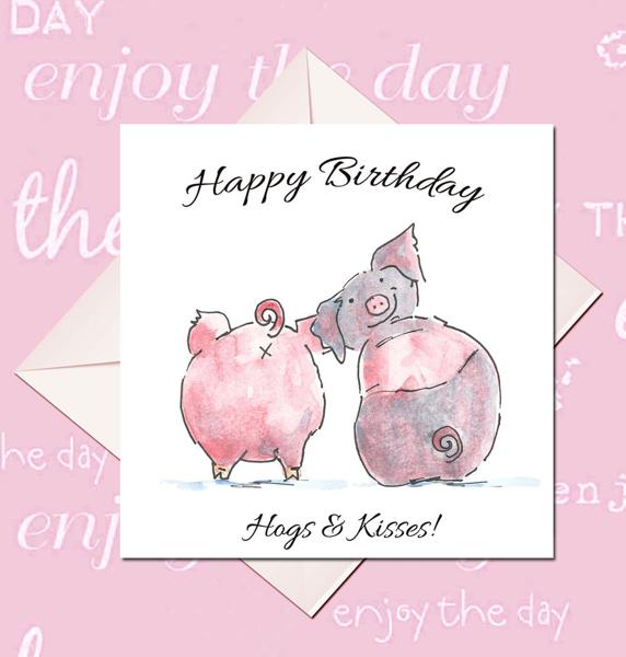 Cute little watercolour Piggie card …. Birthday Hogs and Kisses!