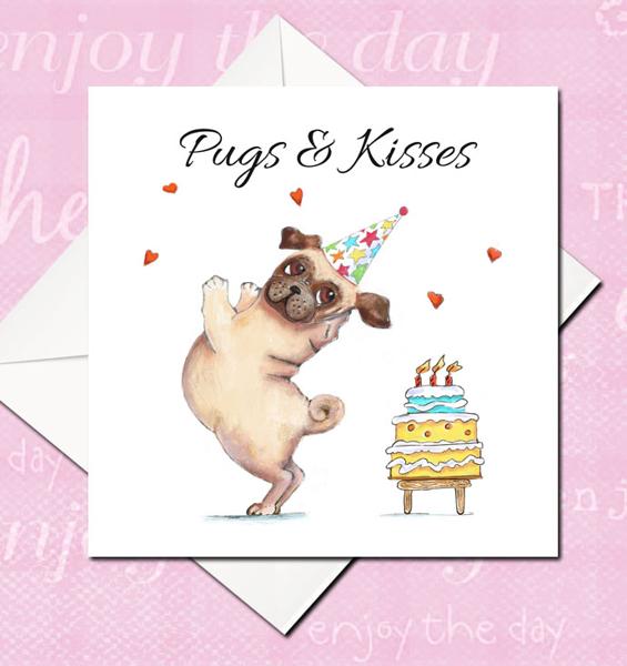 Illustrated Pug Birthday Card